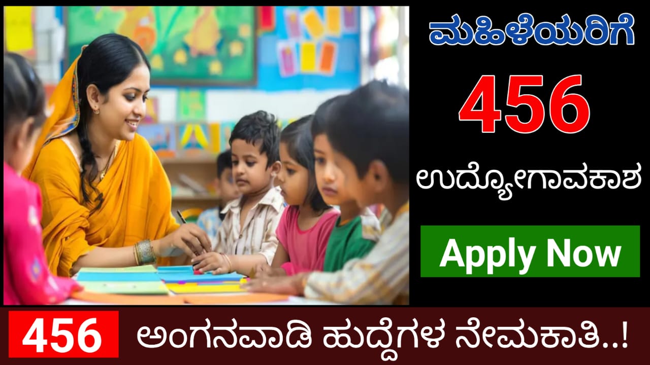 ಕರ್ನಾಟಕ ಸರ್ಕಾರ ಹೊರತಂದಿರುವ ಈ 456 ಅಂಗನವಾಡಿ ಹುದ್ದೆಗಳು ಗ್ರಾಮೀಣ ಹಾಗೂ ಪಟ್ಟಣ ಭಾಗದ ಮಹಿಳೆಯರಿಗೆ ದೊಡ್ಡ ಅವಕಾಶ. ಹೆಚ್ಚಿನ ವಿದ್ಯಾರ್ಹತೆ ಇಲ್ಲದವರಿಗೂ ಸಹಾಯಕರ ಹುದ್ದೆಗಳ ಮೂಲಕ ಸರ್ಕಾರದಲ್ಲಿ ಸೇವೆ ಸಲ್ಲಿಸುವ ಅವಕಾಶ ಸಿಗುತ್ತಿದೆ.
