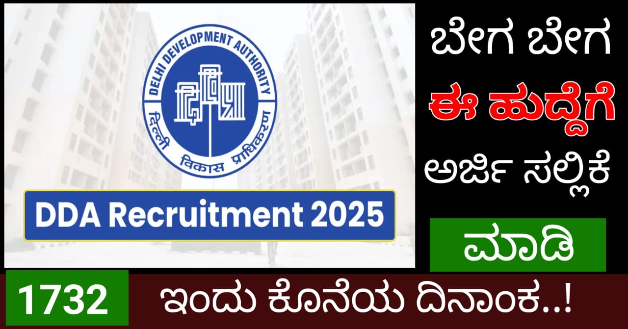DDA ನೇಮಕಾತಿ 2025: ದೆಹಲಿಯಲ್ಲಿ 1732 ಹುದ್ದೆಗಳಿಗೆ ಭರ್ತಿ ಪ್ರಾರಂಭ! 2025
