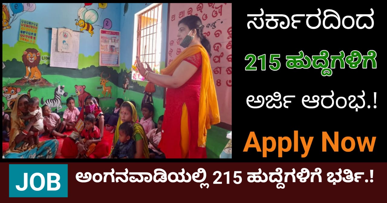 ಅಂಗನವಾಡಿಯಲ್ಲಿ 215 ಹುದ್ದೆಗಳಿಗೆ ಅರ್ಜಿ ಪ್ರಾರಂಭವಾಗಿದೆ. ( ಕೊಡಗು )